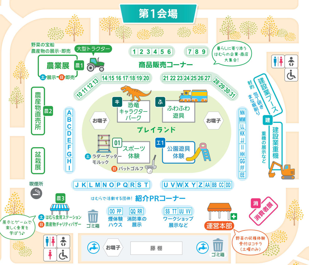 農産物特売や包丁研ぎなど早く並ぶ価値のあるブース、美味しいグルメのブース(第二会場)も沢山ありますので1日楽しく過ごせます。